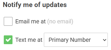 - If you would like to receive update notifications of your request, make sure to select at least one of the notification options at the bottom of the page under the Notify me of updates section: